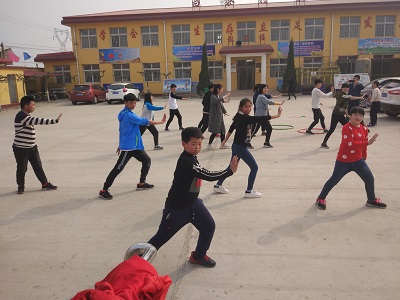 同学们正在和小朋友们打太极小