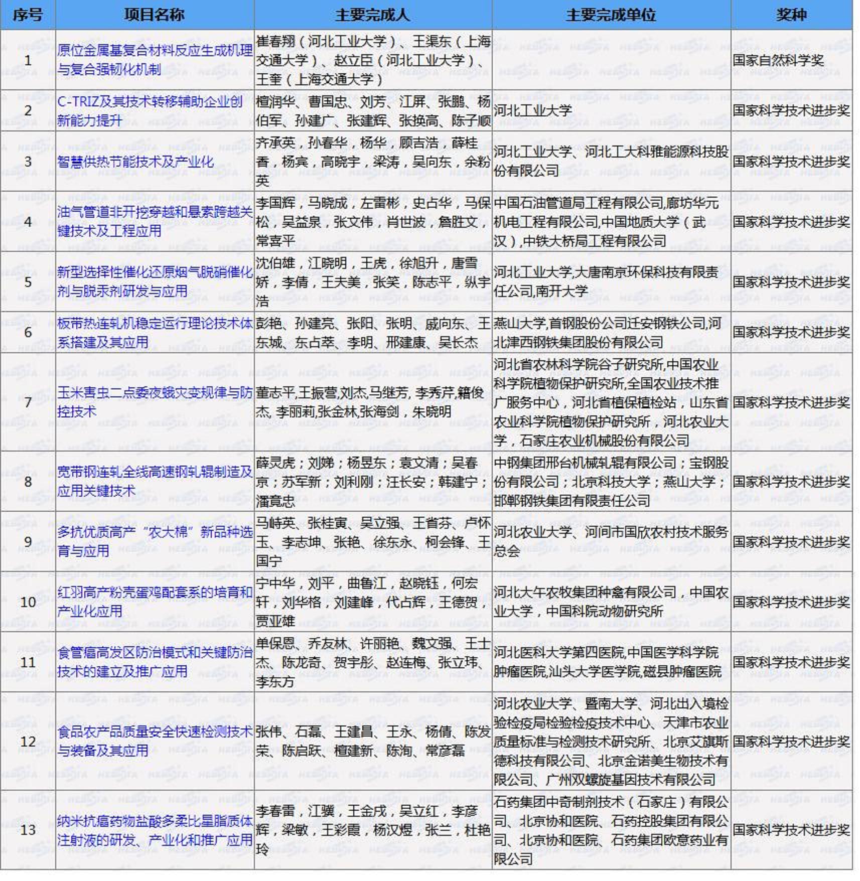河北省科学技术厅关于提名2019年度国家科学技术奖项目的公示(转自省科技厅网)