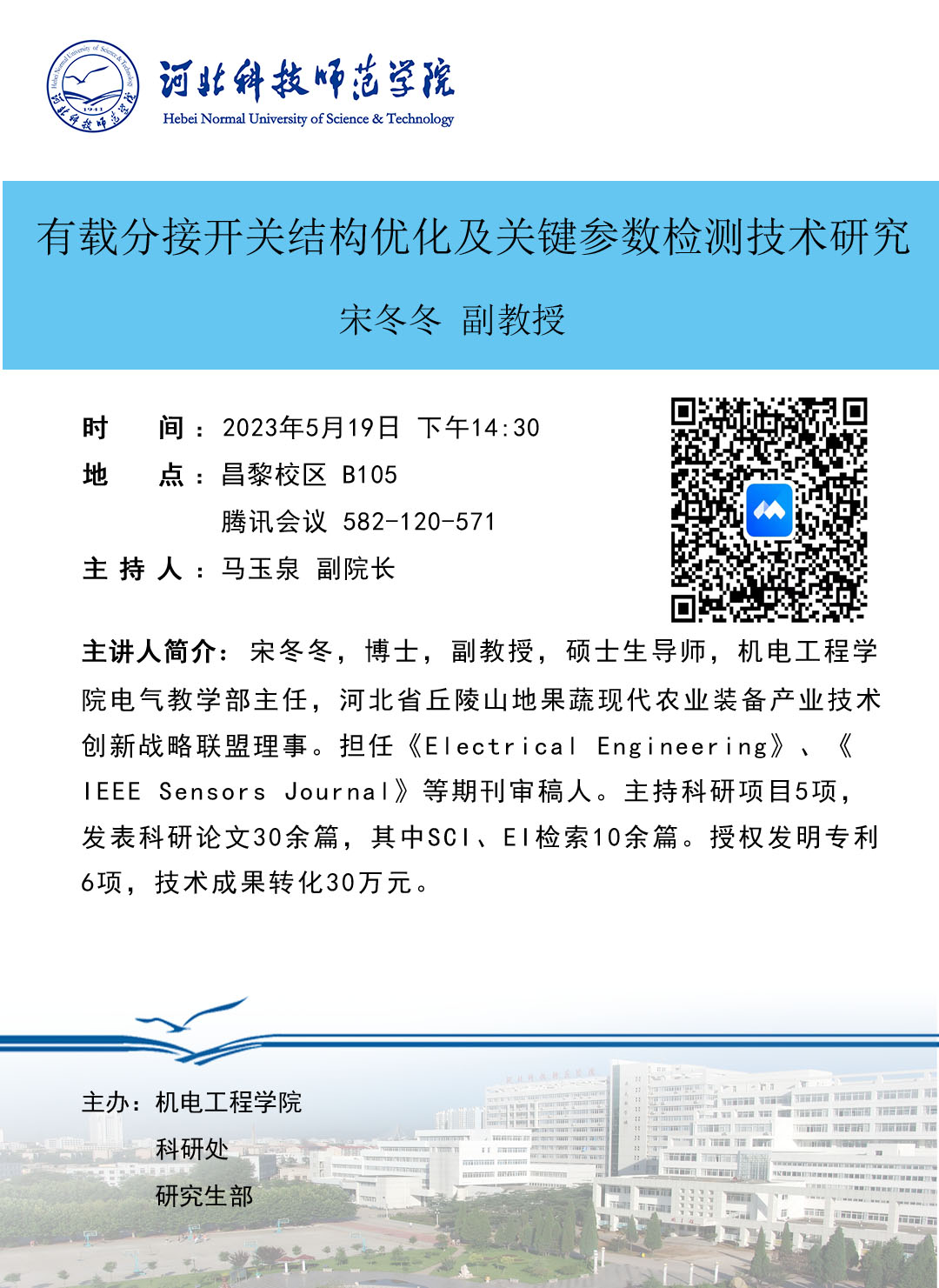 主讲人介绍:宋冬冬,博士,副教授,硕士生导师,一区二区av电气教学部主任,河北省丘陵山地果蔬现代农业装备产业技术创新战略联盟理事。担任《Electrical Engineering》、《IEEE Sensors Journal》等期刊审稿人。主持科研项目5项,发表科研论文30余篇,其中SCI、EI检索10余篇。授权发明专利6项,技术成果转化30万元。