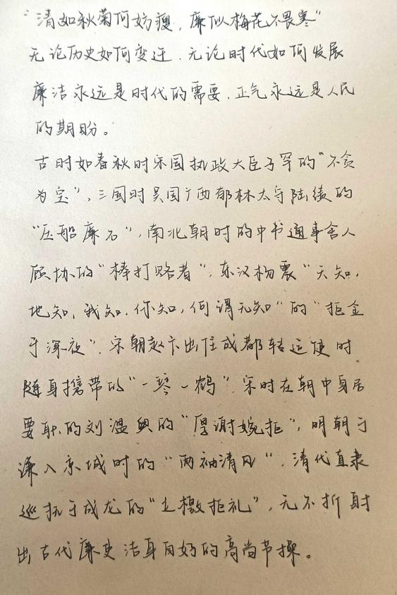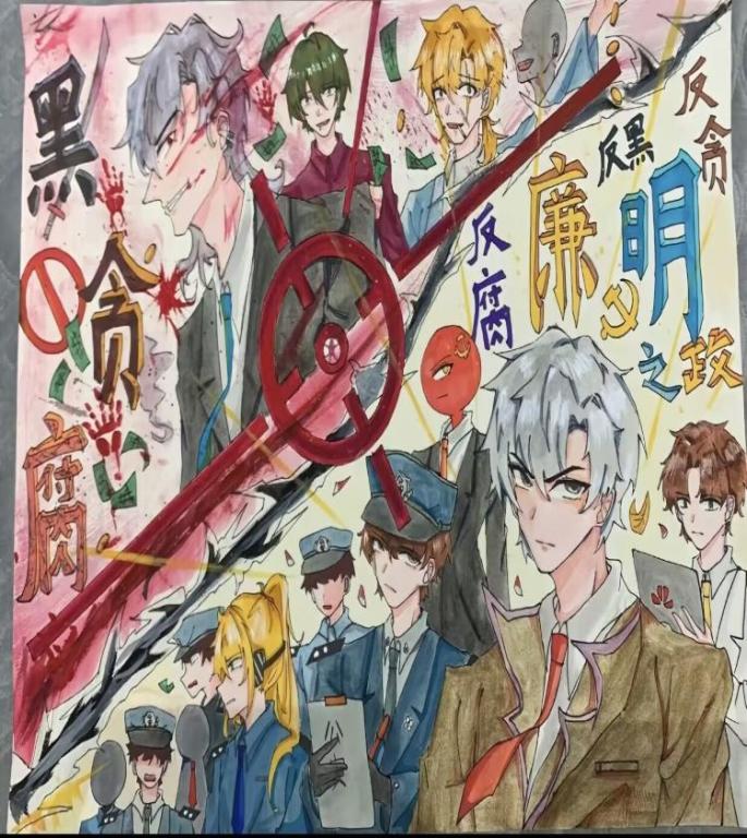 活动通过征集廉政文化主题的书法、绘画作品,引导大学生发扬党的优良传统,营造风清气正的校园氛围吴若萌肖家伟刘旭阳、任宏业同学从中国传统优秀文化和特色先进文化中寻找灵感,用生动的笔触将廉洁正气描绘在纸上。
